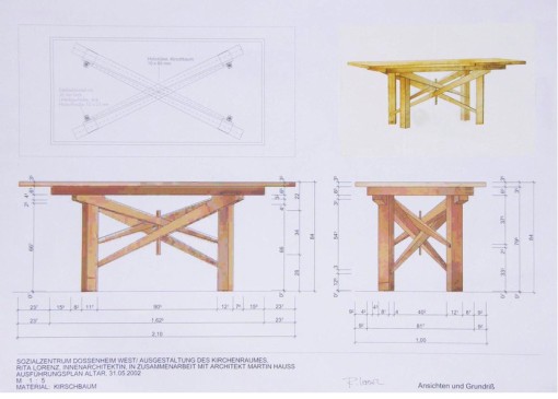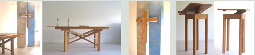 Herstellung: Altartisch, Ambo, Rohkorpus Altarwand: Schreinermeister Dirk Horlebein im Wichernheim Heidelberg