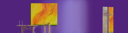 Apostelg. 2 · Feuer des Heiligen Geistes · Gemälde eingebunden in eine Fotomontage (Photoshop) mit Prinzipalien aus einem Gottesdienstraum in Dossenheim