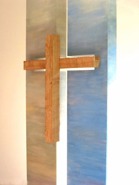 Foto Altarwand, Entwurfs-Inspiration und Herstellung des Kreuzes: Rita Lorenz (Holzdesignerin)